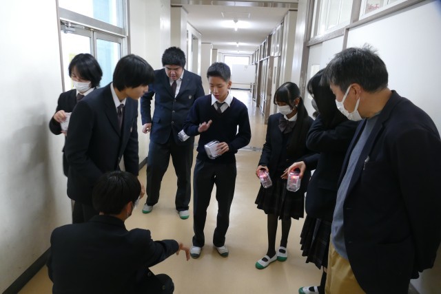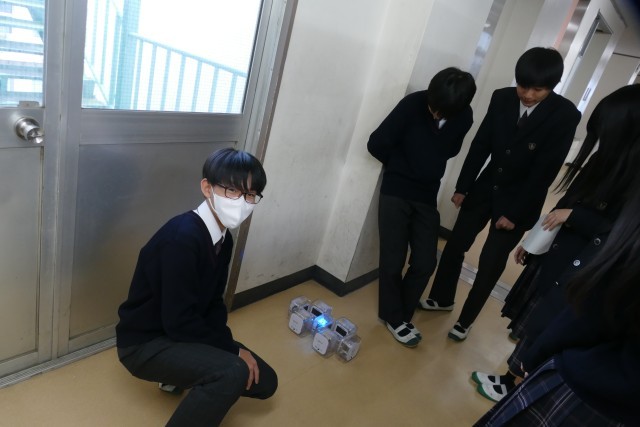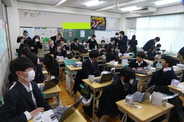 11月25日(火)3校時に3年生の教室と廊下で技術科の授業が行われていました。3年生のみなさんは、プログラミングの学習の実験をしていました。本時の目標は「7セグメントプログラムを完成させる!」です。グループで協力しながら楽しく学んでいました。