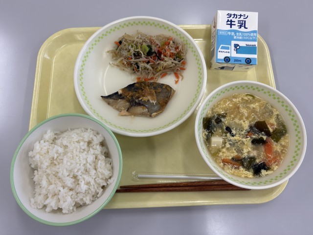 今日の給食のメニューは、ごはん、牛乳、あじの町田産ねぎみそがけ、じゃこ入りおひたし、わかめ入りかきやま汁です。今日は寒かったので、あったかいわかめ入りかきたま汁がとても美味しかったです。ご馳走さまでした。