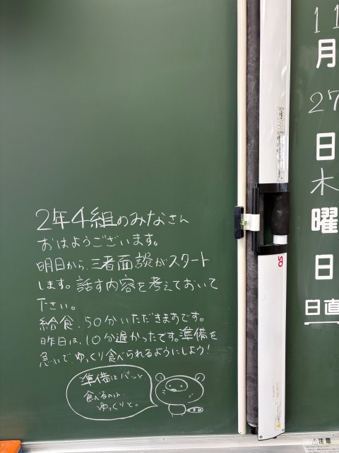 11月27日(木)学年主任や学級担任の先生からのメッセージ