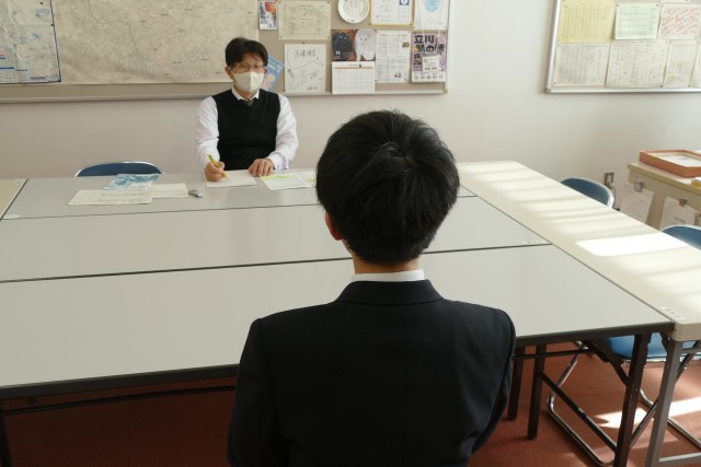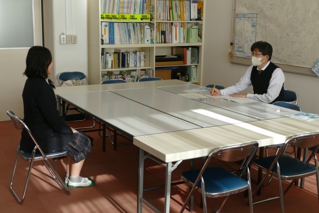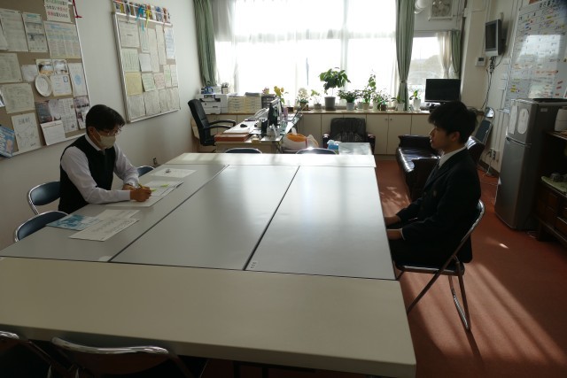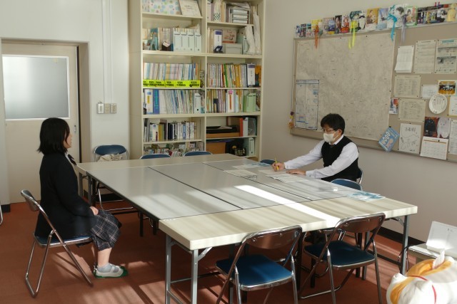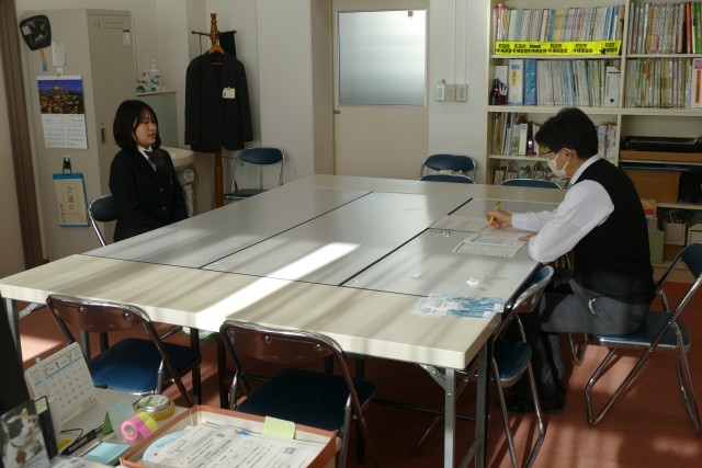 11月28日(金)の放課後から高校の推薦入試に向けての面接練習が始まりました。生徒のみなさんは、とても緊張していましたが、面接官の質問に対して一生懸命に答えていました。頑張ってください。応援しています。