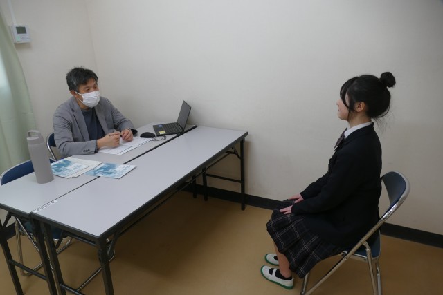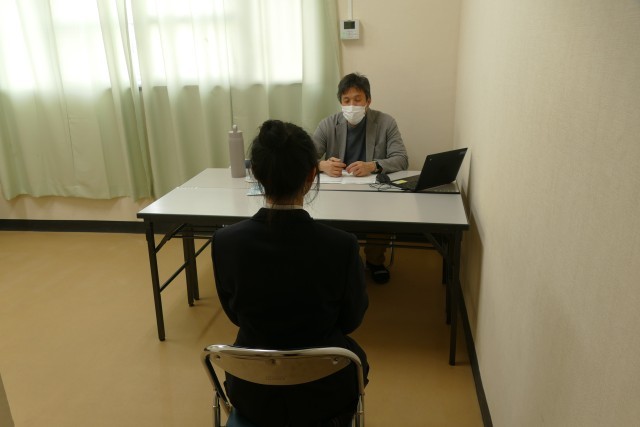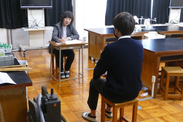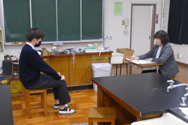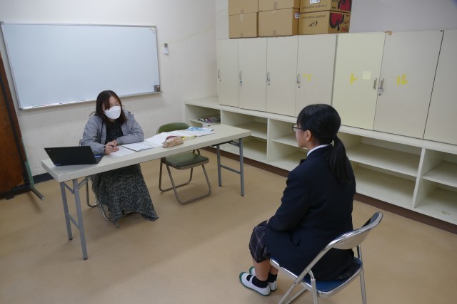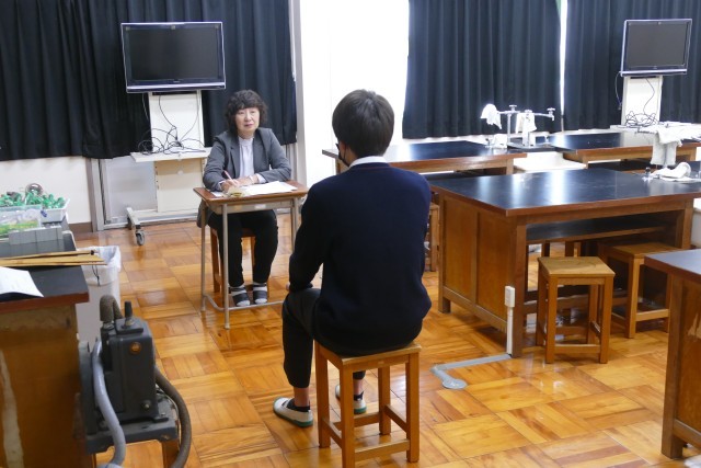 12月5日(金)の午後に3年生のみなさんは面接練習を行っています。本番同様に真剣に取り組んでいます。頑張ってください。応援しています。