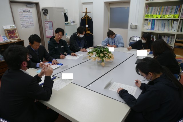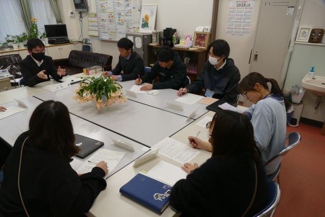 12月22日(月)16時から校長室で、第8回若手教員研修会を行いました。講師は生活指導主任の小川先生です。小川先生からは、生活指導について日々心掛けていることを自らの実践を通じて具体的にお話ししていただきました。講義が終わった後に、若手の先生からは日々疑問に思っていることや、指導方法についての質問がありました。小川先生からより具体的な指導について教えていただきました。ぜひ、若手の先生方は、本日学んだことを明日からの生活指導に生かしてほしいと思います。講師の小川先生、ご指導、ありがとうございました。
