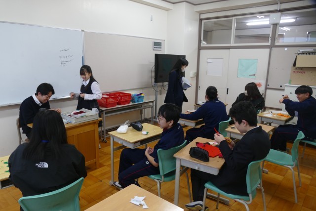12月24日(水)2校時に、9組のみなさんが家庭科の授業に集中して取り組んでいました。一つ一つ丁寧に裁縫をして「おせち料理」を完成させました。素晴らしい出来栄えにびっくりです。