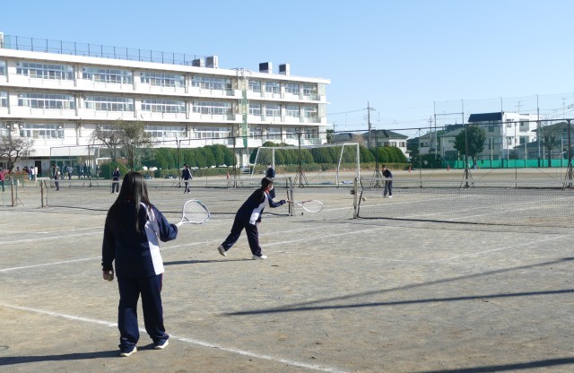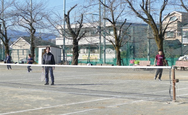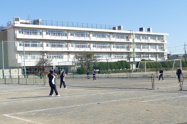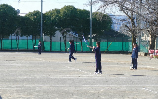 1月6日(火)にテニスコートでは、ソフトテニス部のみなさんが練習に取り組んでいました。