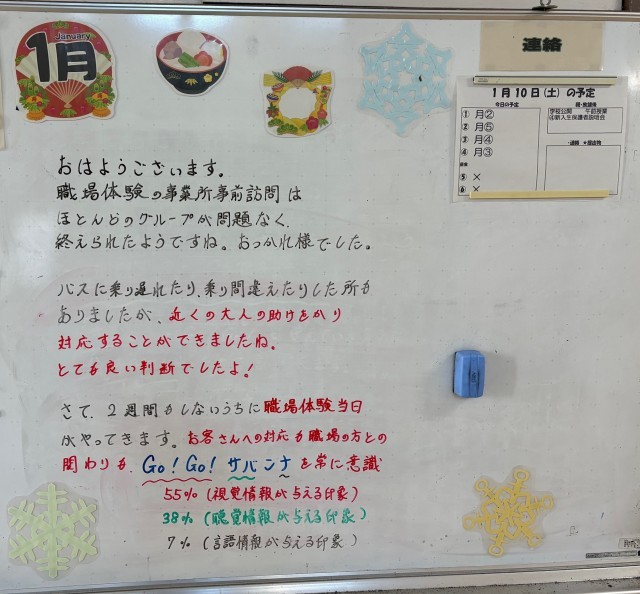 1月10日(土)の朝に校舎内を巡回していたら、学年主任や学級担任の先生からのメッセージが書いてありました。