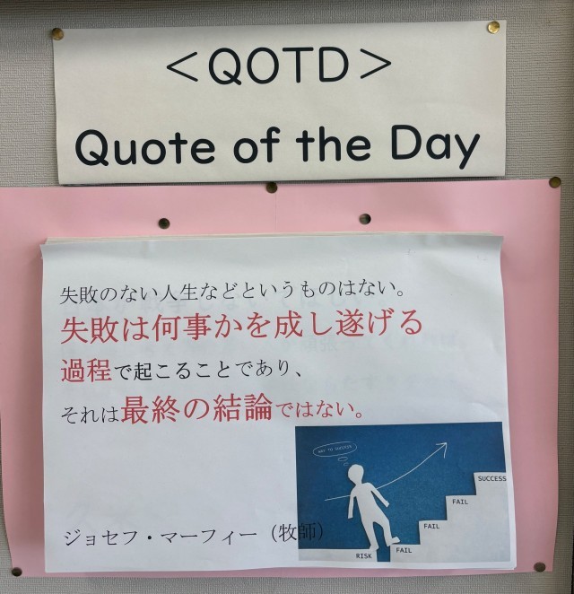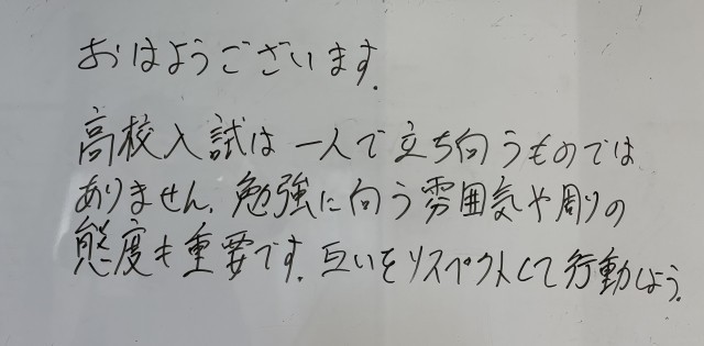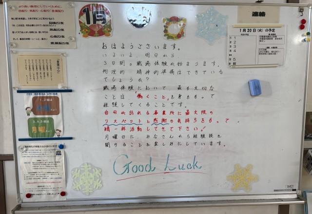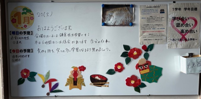 1月20日(火)の朝に校舎内を巡回していたら、学年主任や学級担任の先生からのメッセージが書いてありました。