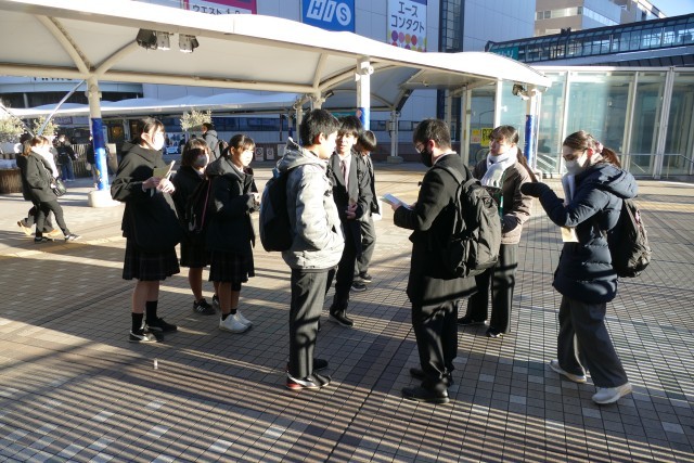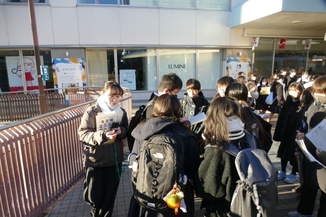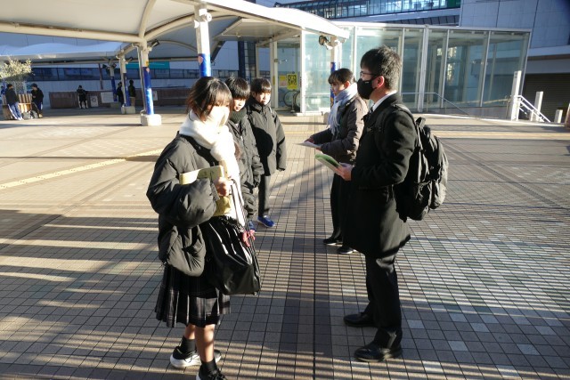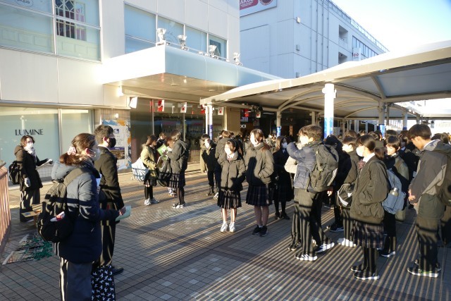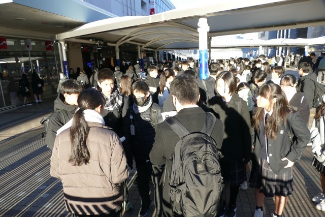 1月22日(金)鎌倉校外学習がスタートします。740分には、1年生のみなさんが班ごとに集まってます。天気にも恵まれ、みなさん元気に出発しています。