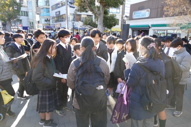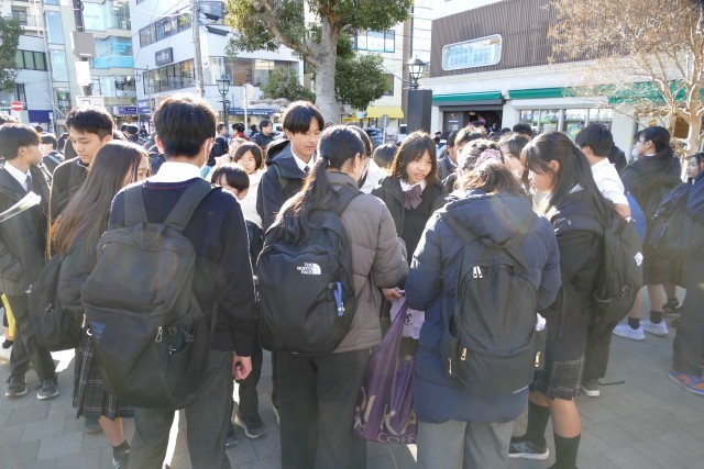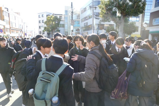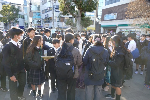 鎌倉校外学習もいよいよ終わりに近づいています。生徒のみなさんは鎌倉駅前の時計台広場に続々と班ごとに集まっています。鶴岡八幡宮や鎌倉大仏、長谷寺、銭洗弁天などの名所を巡って、歴史や文化に触れることができました。古都鎌倉の美しい景色に感動し、美味しいものを食べ、班のみんなと協力し合って最高の思い出ができました。