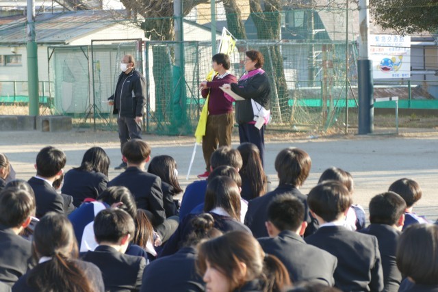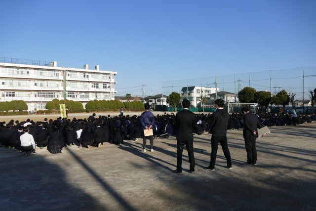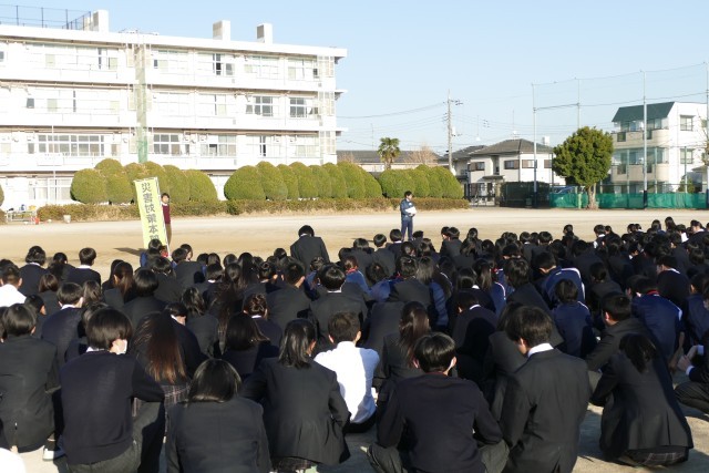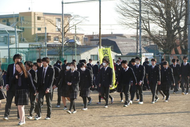 1月27日(火)午後3時10分から地震を想定した避難訓練を行いました。生徒の皆さんは先生の指示に従って整然と静かに校庭へ避難することができました。