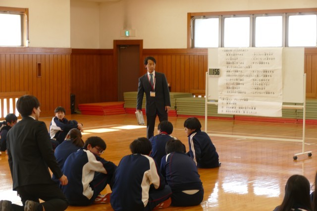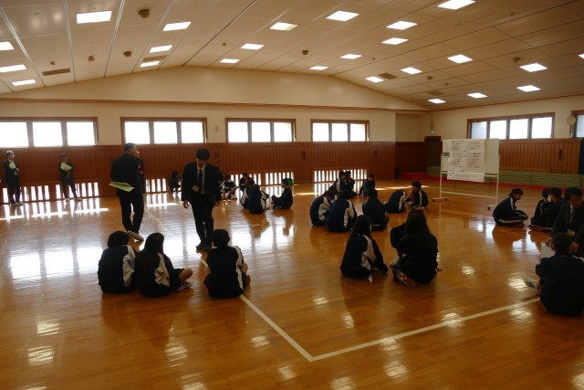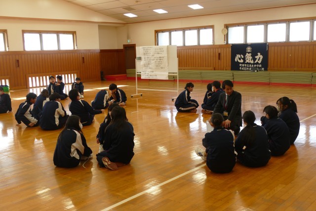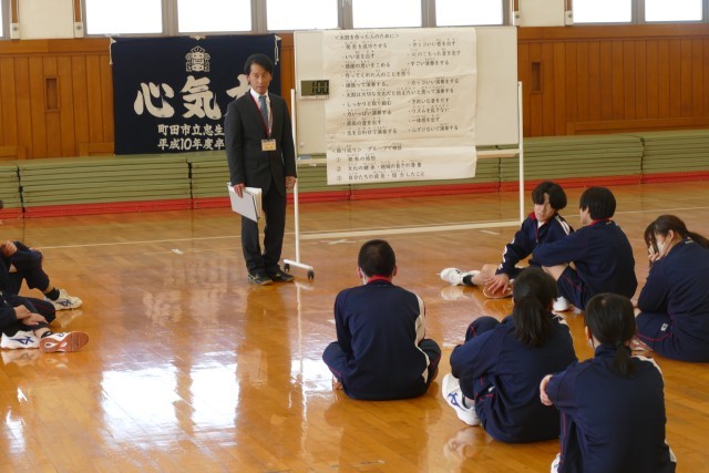 1月30日(金)午後1時20分から忠生中学校で「令和6・7年度 東京都教育委員会人権尊重教育推進校 研究発表会」を開催しました。9組の授業の様子です。9組は「和太鼓の響きに込められた誇りと文化」をテーマに取り組んでいました。