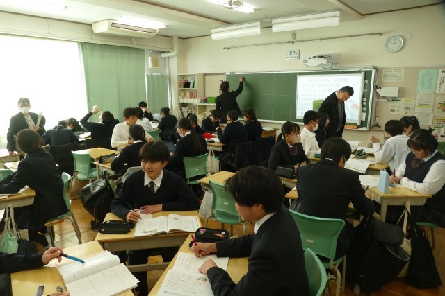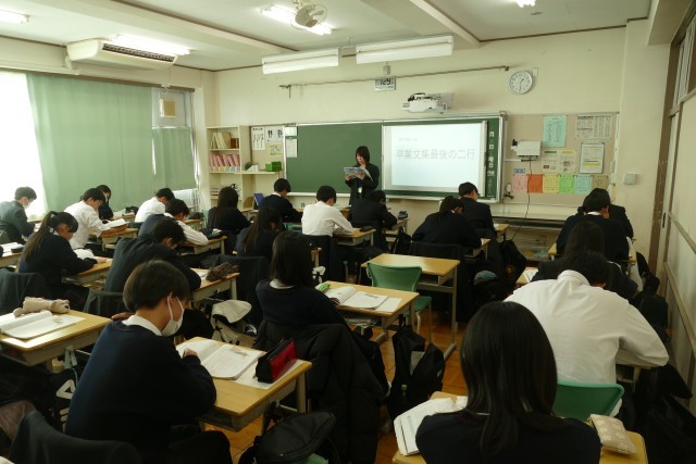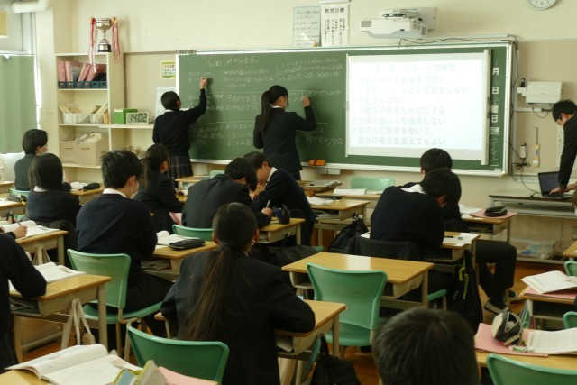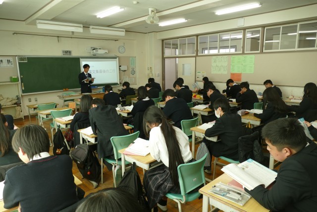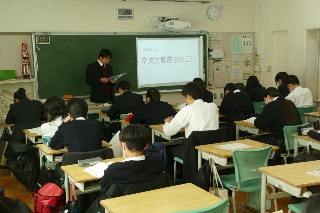 1月30日(金)午後1時20分から忠生中学校で「令和6・7年度 東京都教育委員会人権尊重教育推進校 研究発表会」を開催しました。3年生の授業の様子です。3年生は特別な教科 道徳「卒業文集最後の2行」の授業に取り組んでいました。