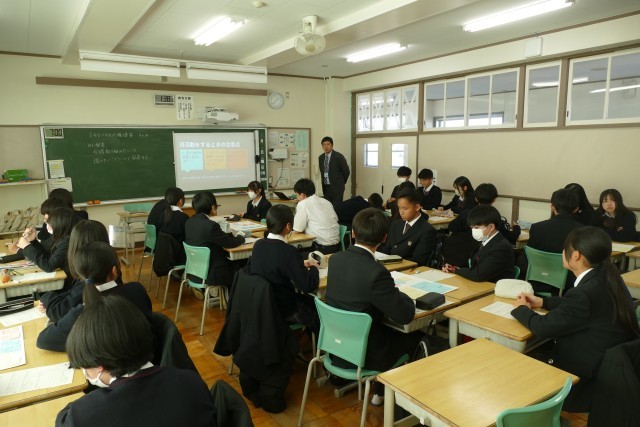 1月30日(金)午後1時20分から忠生中学校で「令和6・7年度 東京都教育委員会人権尊重教育推進校 研究発表会」を開催しました。2年生の授業の様子です。2年生は「SNSによる人権侵害」の授業に取り組んでいました。