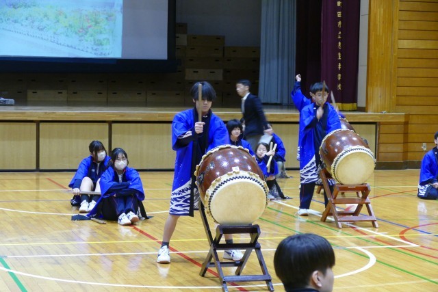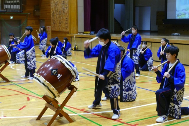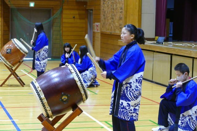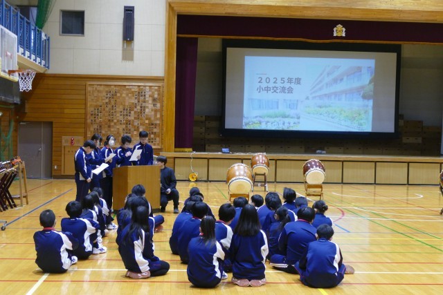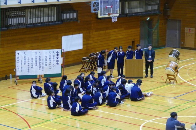 2月5日(木)10時からアリーナで、小中交流会を行いました。忠生小学校と小山田南小学校のみなさんが忠生中学校に来てくれました。はじめに、忠生小学校の代表の児童が元気に開会のあいさつをしてくれました。次に忠生中学校の校長先生からご挨拶がありました。そして、忠生中学校のみなさんが素晴らしい太鼓の演奏を披露しました。生徒のみなさんの迫力あるかっこいい太鼓の演奏に児童のみなさんも感動したようです。