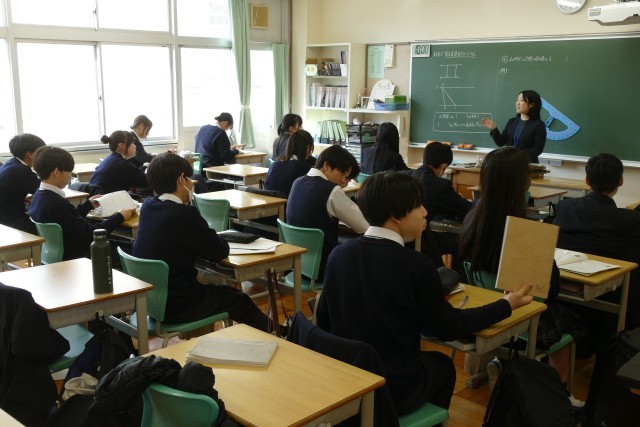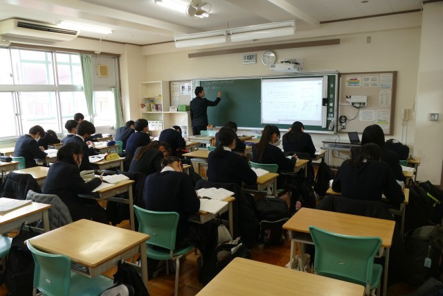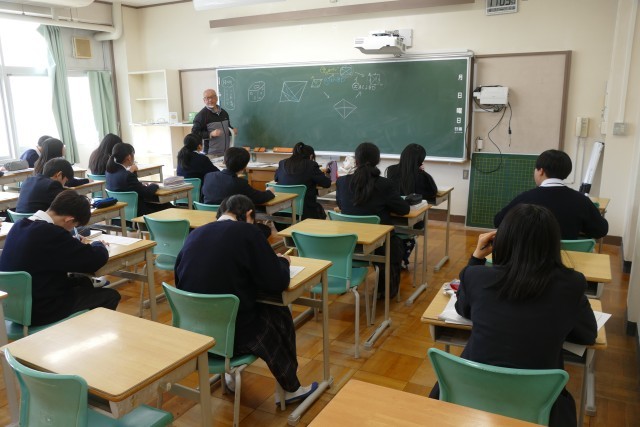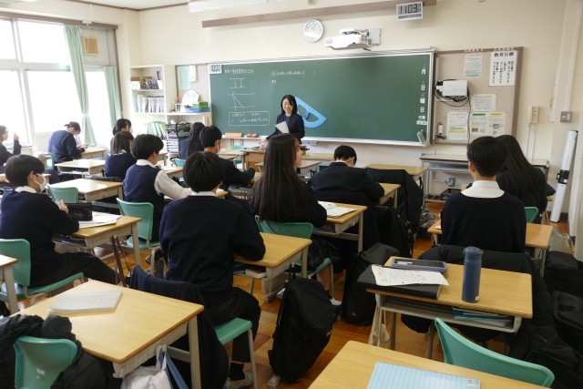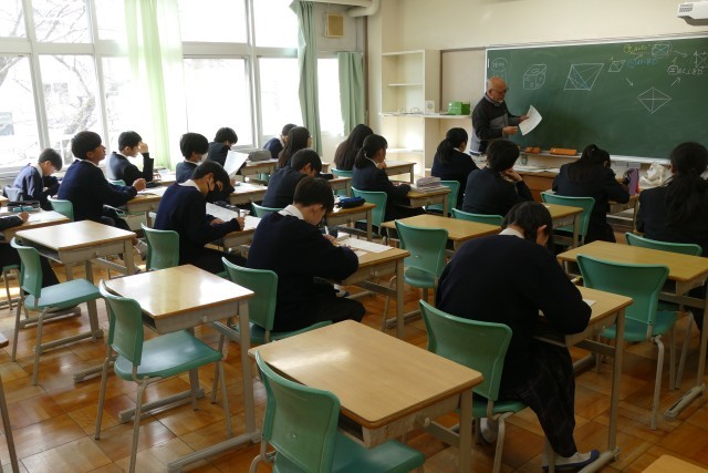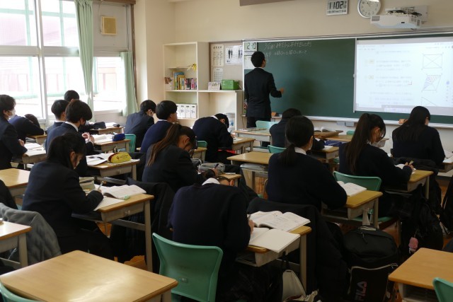 2月6日(金)3校時の2年生の数学少人数授業の様子です。三角形と四角形の「等積変形」について学んでいました。