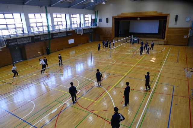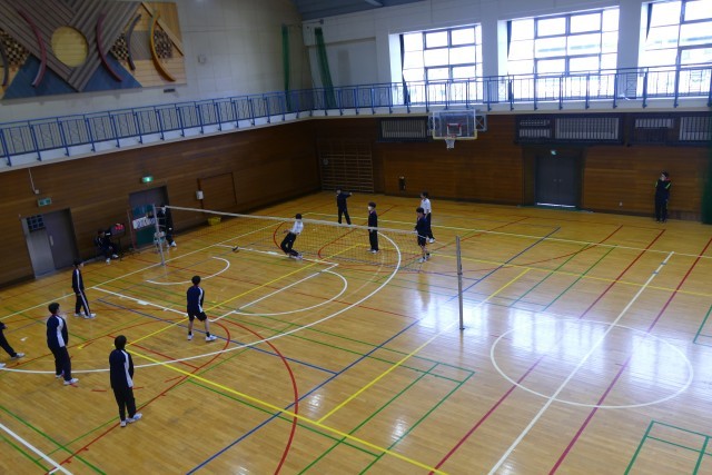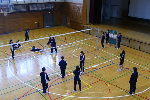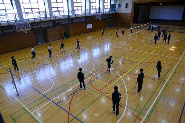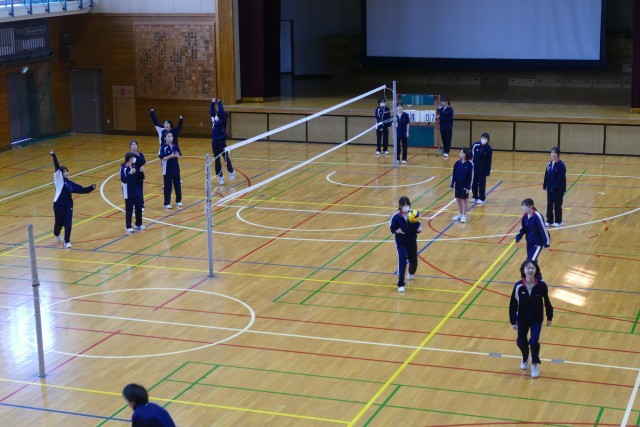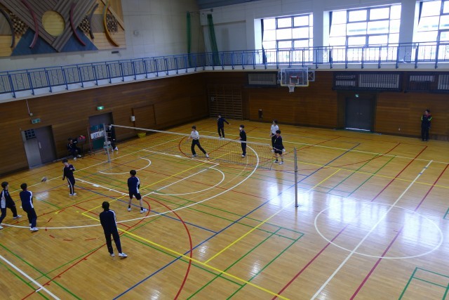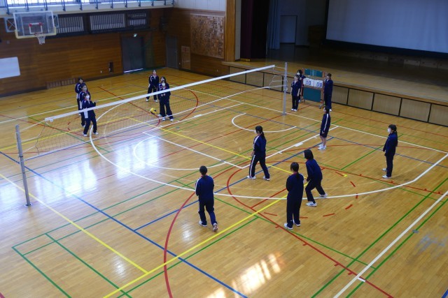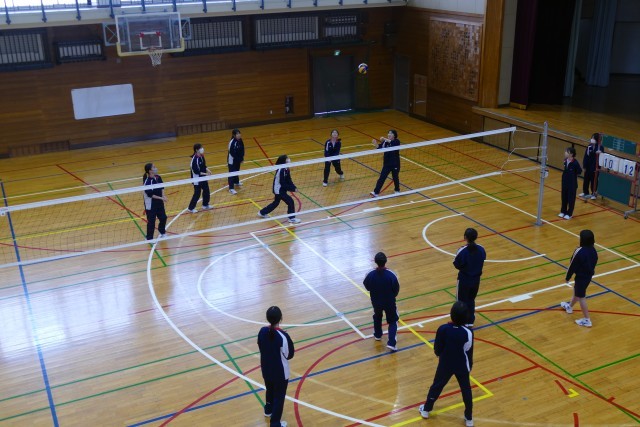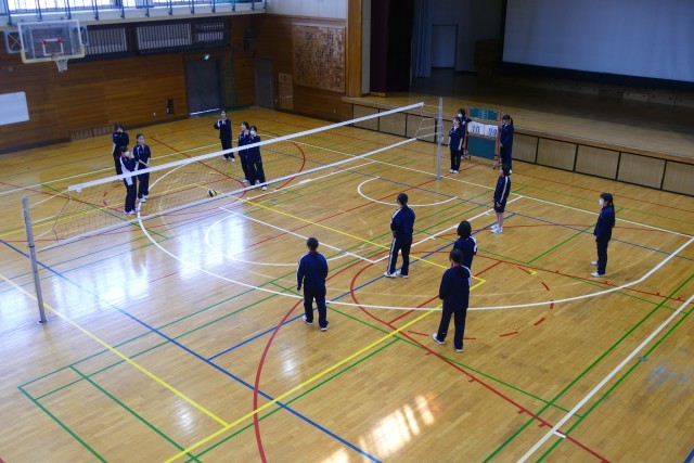 2月6日(金)3校時、体育の授業の様子です。アリーナで生徒のみなさんがバレーボールをしていました。