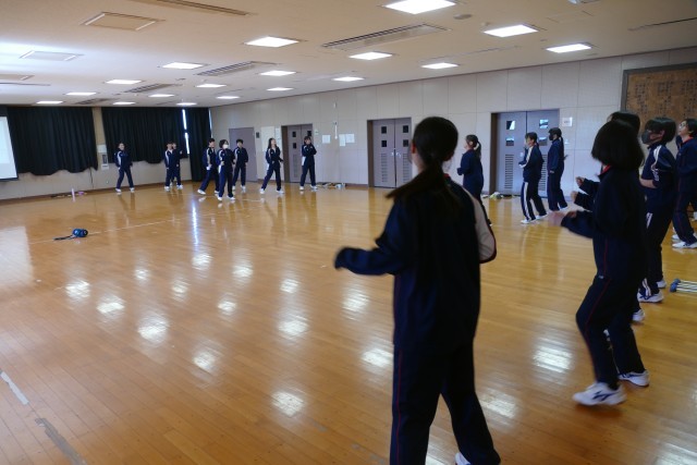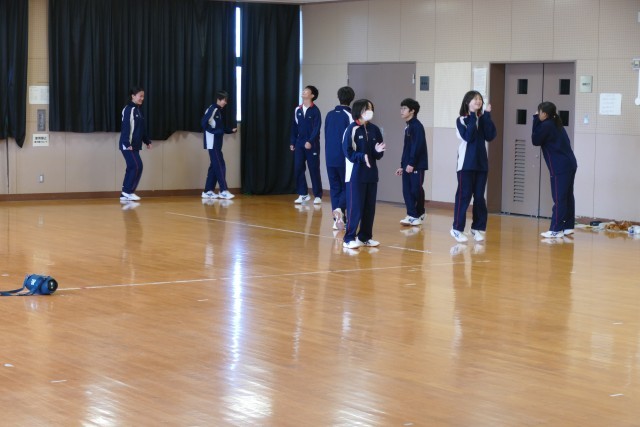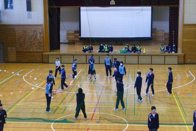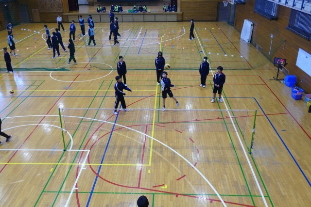 2月9日(月)5校時の体育の授業の様子です。3年生はハンドボール、2年生はダンス、1年生はバレーボールに取り組んでいました。