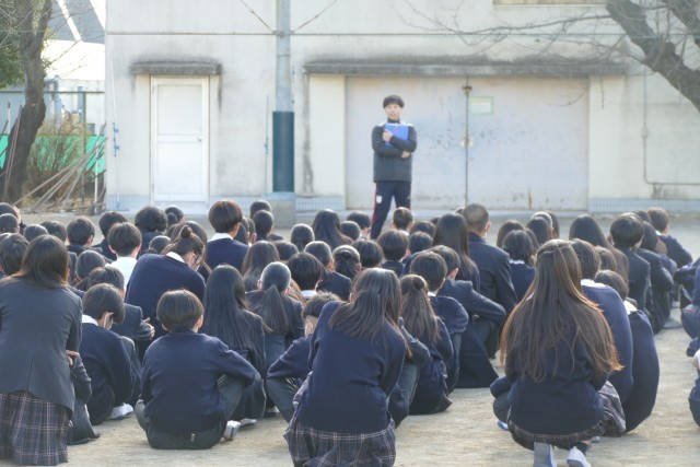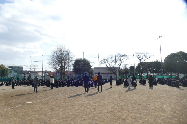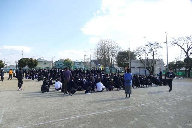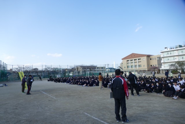 2月18日(水)午後2時10分から避難訓練を行いました。今回の訓練の目的は、不審者が校内に侵入し、被害が生じそうな状況での退避行動と避難です。副校長先生の放送のあと、先生と生徒のみなさんは全力で避難しています。校庭に避難してから、2学年主任の中山先生から指導・講評がありました。中山先生からは、➀校舎内では、必ず来校者に挨拶をして、不審者かそうでないかを見極めること、②避難時に不審者がいると想定される場所に姿や声が届かないように配慮すること、③移動する際に不審者に襲撃されないように、授業が空いてる先生方も階段や廊下で生徒のみなさんを見守っていること、④校庭に生徒のみなさんが集まった後は、先生方が校舎側に立って、不審者から生徒のみなさんを守っていること、⑤生徒のみなさんが避難訓練を真剣に取り組むことが、身を守るうえでとても大切なことなどのお話がありました。生徒のみなさんは、中山先生のお話を真剣に聞いていました。「備えあれば患いなし」です。次回の避難訓練も真剣に取り組んでいきましょう。