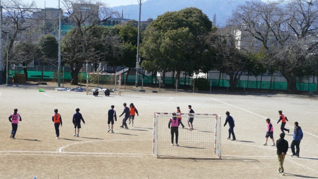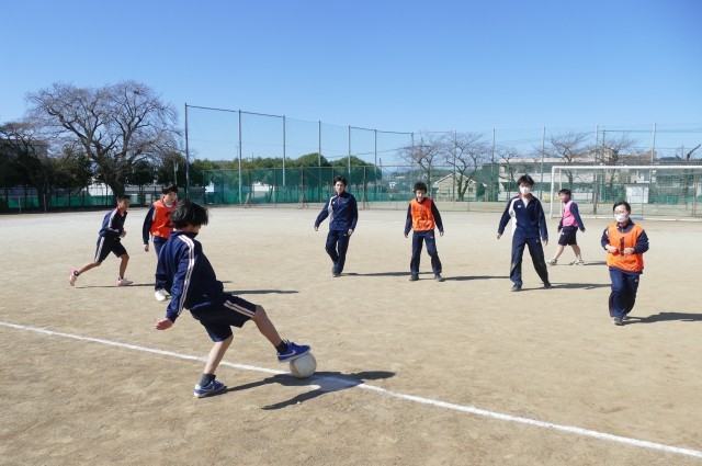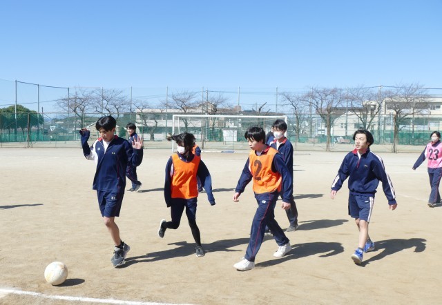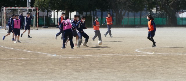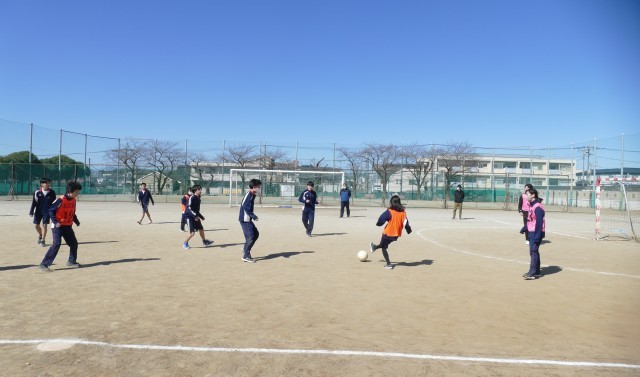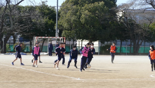 2月19日(木)3校時に校庭で、9組のみなさんが体育の授業でサッカーのゲームをしていました。みなさんは一生懸命にプレーしていました。白熱した素晴らしい試合に感動しました。