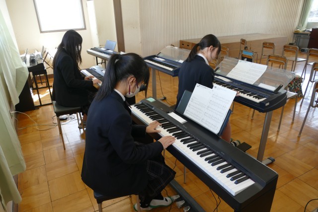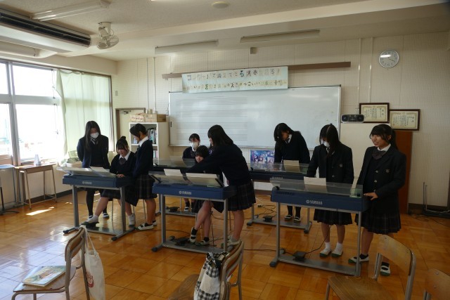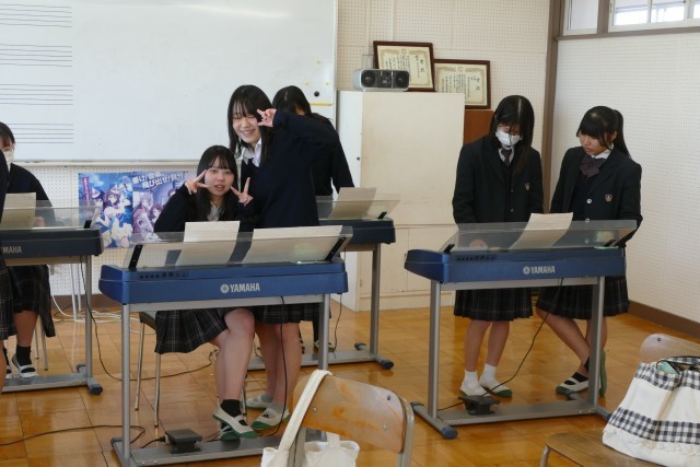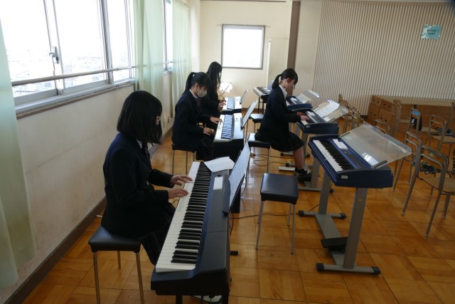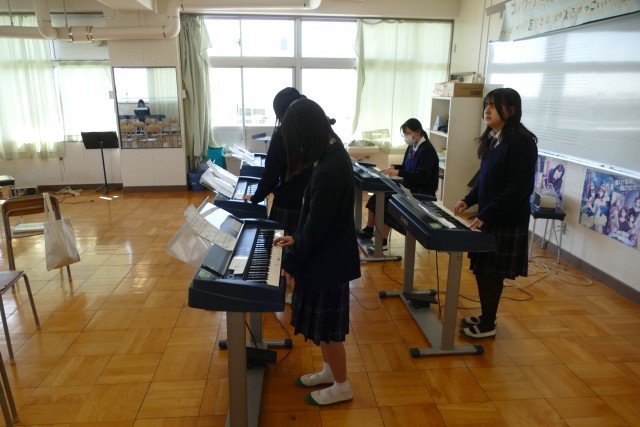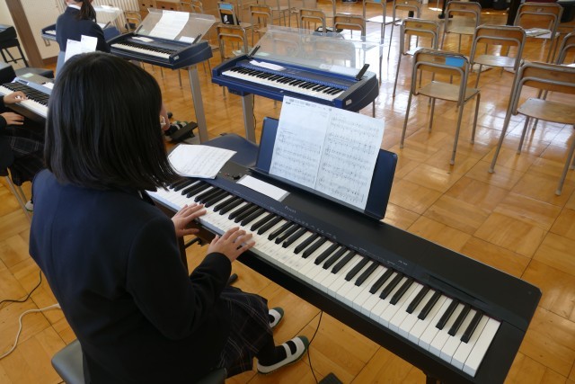 2月19日(木)3校時に音楽室で3年生のみなさんが、音楽の授業に一生懸命に取り組んでいました。男子は、廿楽先生の指導のもと、大きな声で歌っていました。すごい迫力です。素晴らしいです。女子は、電子ピアノの伴奏練習を友達と仲良く、まじめに取り組んでいました。素晴らしいです。