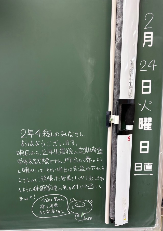 2月24日(火)学年主任や学級担任の先生からのメッセージ