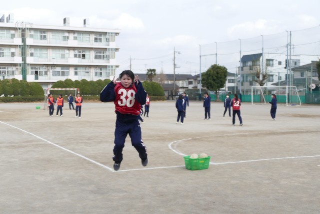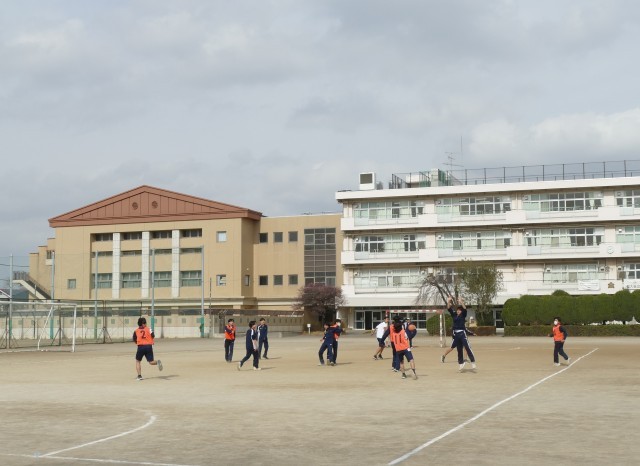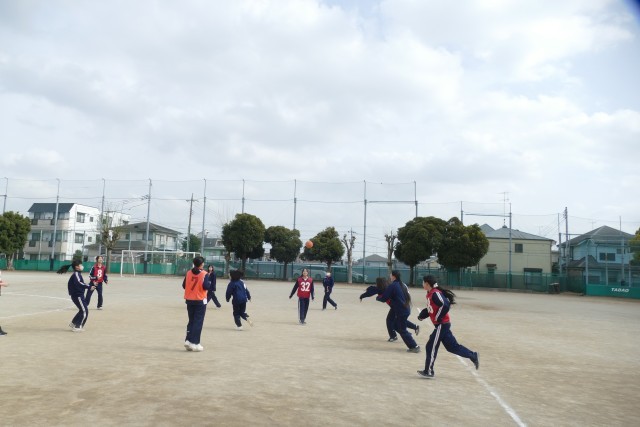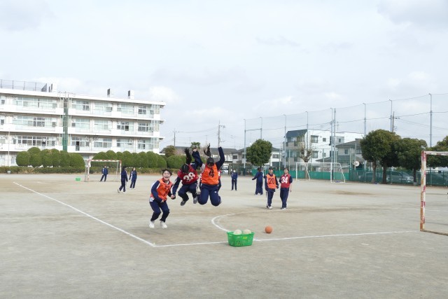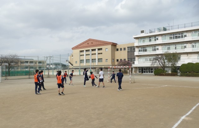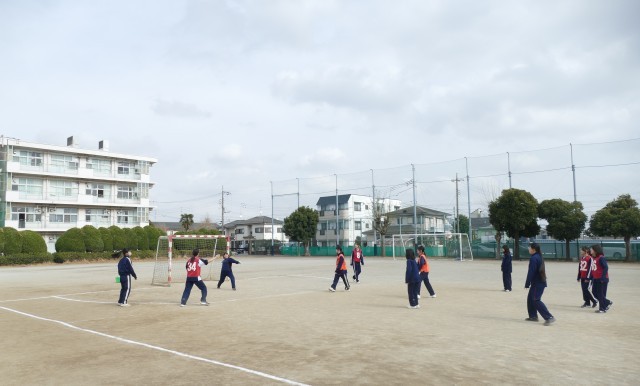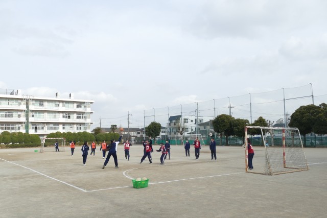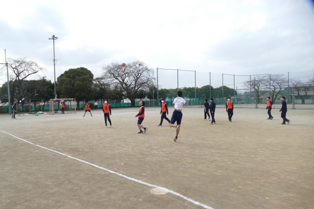 2月24日(火)5校時の3年生の体育の授業の様子です。3年生の皆さんは、校庭でハンドボールの試合をしていました。都立の入試も終わって、明るく楽しそうに授業に取り組んでいます。