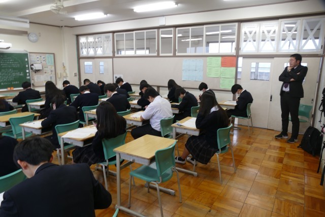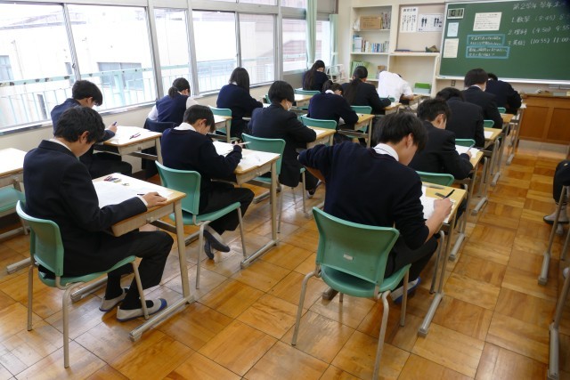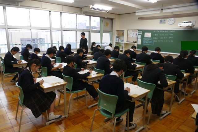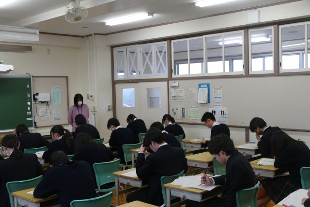 2月25日(水)学年末考査の1日目です。本日は、数学、理科、美術の3教科です。2年生の様子です。生徒の皆さんは真剣に問題を解いています。頑張ってください。応援しています。