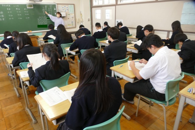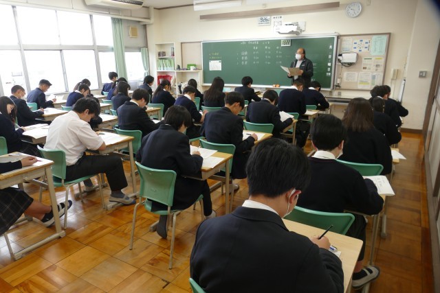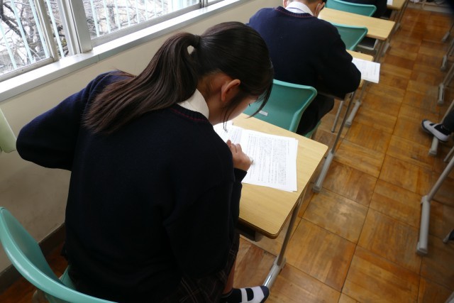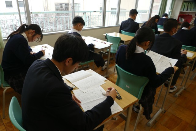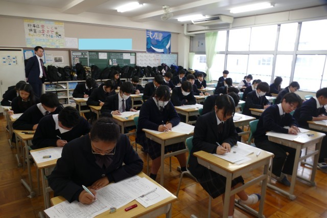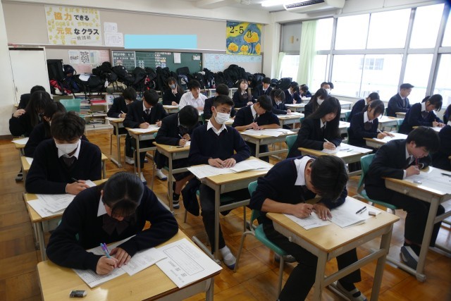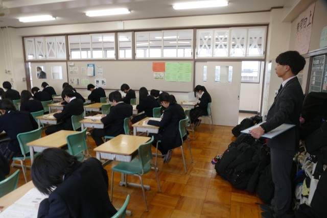 2月26日(木)学年末考査の2日目です。1・2年生は、国語、英語、音楽の3教科です。2年生の様子です。生徒の皆さんは一生懸命に問題を解いています。頑張ってください。応援しています。