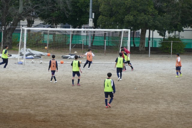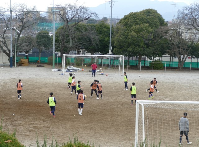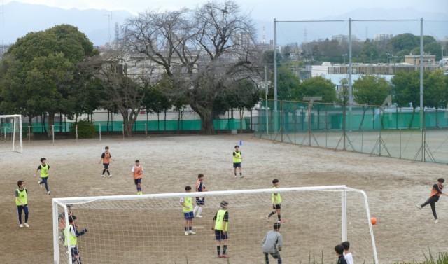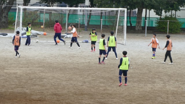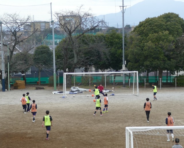 2月27日(金)学年末考査が終わりました。放課後には、校庭でサッカー部の皆さんがゲームをしていました。顧問の八幡先生がゴールキーパーをして、生徒と一緒に汗を流していました。