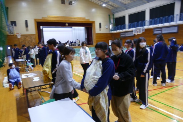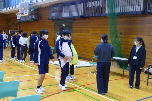 今回、赤ちゃん親子ボランティアのみなさんが40名も忠生中学校に来ていただきました。大変お忙しい中、忠生中学校の3年生のためにお集まりいただき、心より感謝申し上げます。また、育児休業中の上田先生と小宮先生も赤ちゃんと一緒に参加して、貴重なお話をしていただきました。ありがとうございます。3年生のみなさんは、自分の命や周りの人の命を大切に思う心が育ったと思います。卒業まで残り15日ですが、忠生中学校の最上級生として「有終の美」を飾ってほしいと思います。
