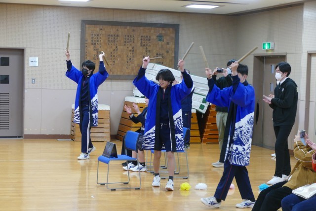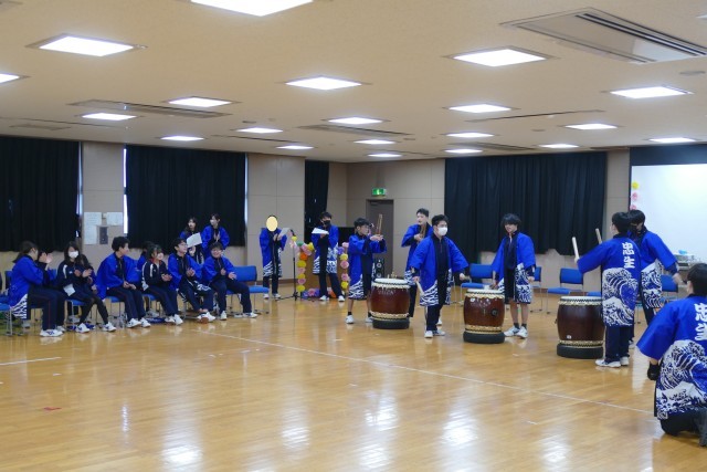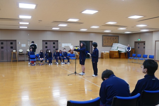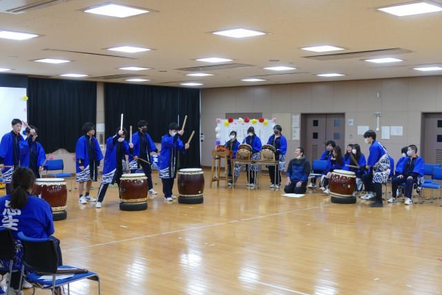 3月6日(金)9時15分から多目的室で9組3年生を送る会を行いました。3年生への贈る言葉では、1・2年生のみんなが作成した文章を代表者4名が3年生へ感謝の思いを込めて発表してくれました。3年生の旅立ちの決意では、3年間で学んだことや思い出を堂々と話してくれました。緊張しながらも、保護者や先生、1・2年生への感謝の気持ちもしっかりと伝えてくれました。太鼓の発表では、1・2年生は「夏祭り」、3年生は「豊年太鼓」の発表がありました。1・2年生は、一生懸命たたき素敵な演奏でした。3年生は力強く力一杯たたき、とても迫力があり、感動しました。1・2年生のアンコールに3年生はとても嬉しそうに応えて演奏しました。参観にお越しくださいました保護者のみなさま、ありがとうございました。