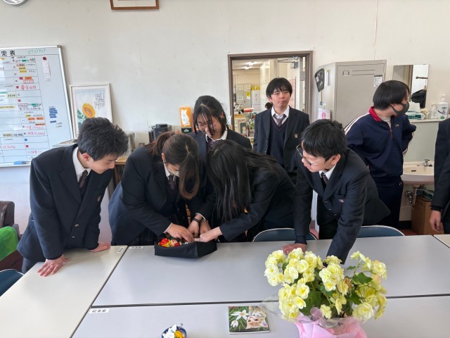 3月11日(水)、校長室に9組の生徒のみなさんが素晴らしい家庭科の作品を見せに来てくれました。フェルトを縫って、おいしいお弁当を作りました。生徒のみなさんの笑顔にうれしくなりました。よく頑張りました。
