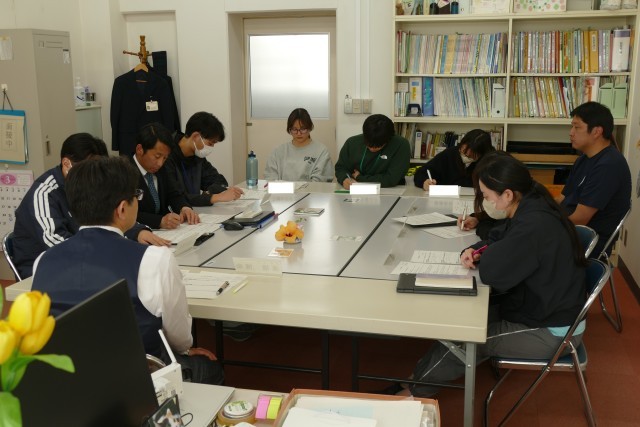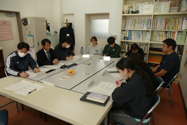 3月24日(火)に校長室で、今年度最後の若手教員研修を行いました。本日のテーマは「いじめ防止対策」です。講師は校長先生です。はじめに、事例をもとに個人で考え、3人一組のグループで意見を出し合い検討していきます。そして、各グループから解決策を発表して、最も良い解決策を導いていきます。最後に校長先生からまとめのお話がありました。いじめ根絶を目指し、危機管理の「さ・し・す・せ・そ」で取り組んでまいります。