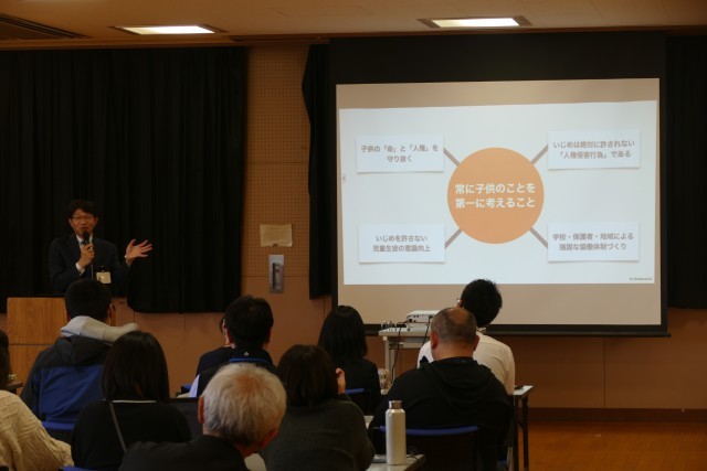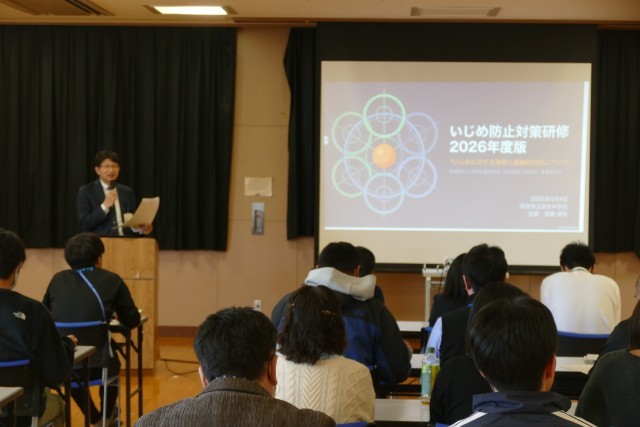 4月3日(金)11時から多目的室で、「いじめ防止対策研修」を行いました。講師は校長先生です。「いじめは、どの学校でも、どの子どもにも、起こり得る」問題であり、いじめに悩む生徒を救うために、「いじめを決して見逃さない、いじめを決して許さない」という決意のもと、忠生中の先生たちは真剣に研修に取り組みました。常に子どものことを第一に考えて、いじめの未然防止、早期発見、早期対応に取り組んでいきます。