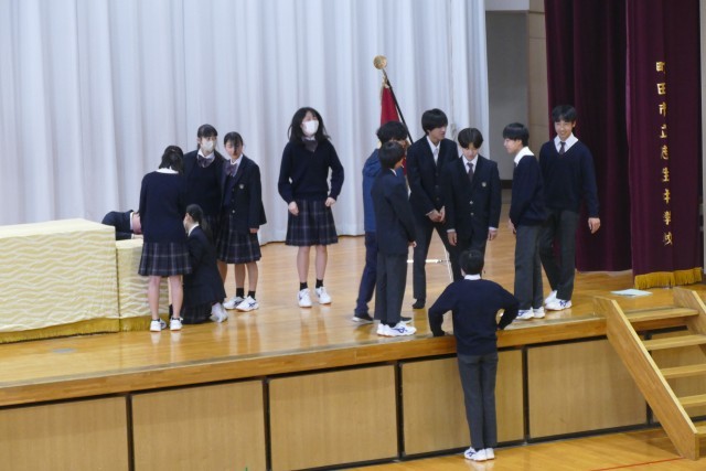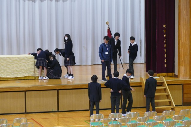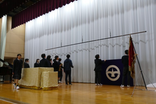 2年生のみなさんもチームワークよく働いて、驚くほどのスピードでステージの設置も終わりました。素晴らしいです。