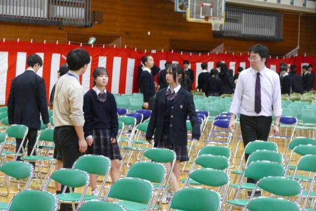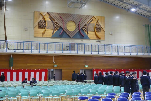2・3年生のみなさんのおかげで、入学式の準備が終わりました。忠生中の生徒のみなさんは本当によく働きます。あたり前のことをあたり前に仕事する姿に、「凡事徹底」ができているなと感心しました。明日は、会場のスペースの関係で2年生はお休みですが、3年生のみなさんは忠生中の「顔」として入学式に参加します。素晴らしい入学式になることを祈っています。