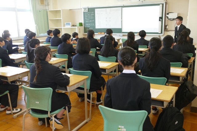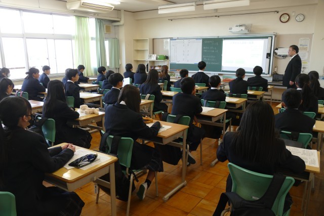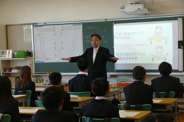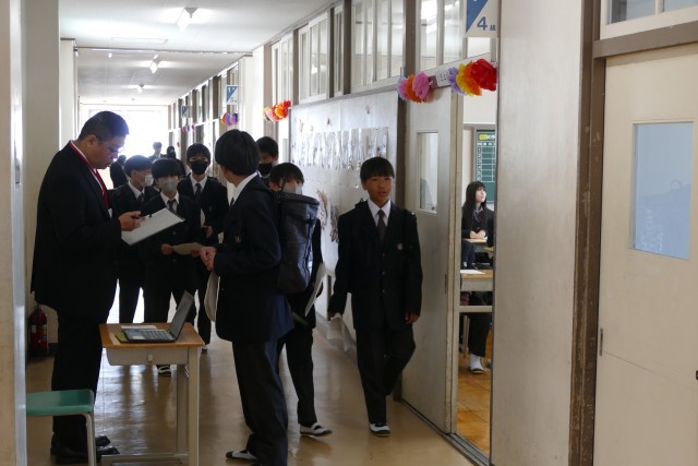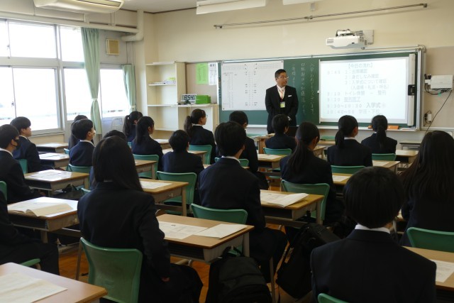 各教室では学級担任の先生が、入学式の入退場の仕方や呼名の説明をしています。みなさんよくお話を聞いています。