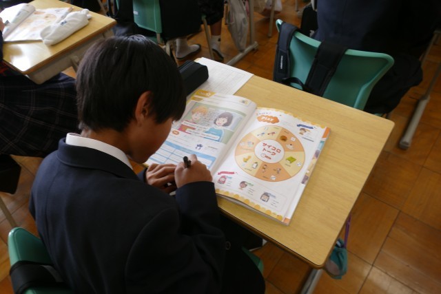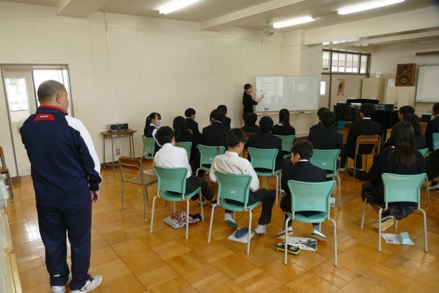 4月15日(水)3校時の1年生の授業の様子です。写真は音楽、英語、数学、体育の授業です。