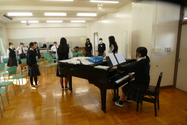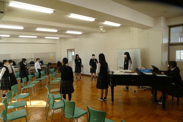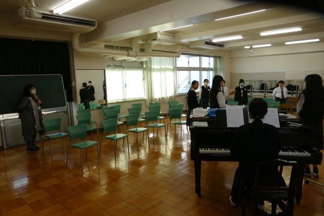 4月16日(木)放課後に音楽室で、合唱部のみなさんが中山先生の指導のもと、一生懸命に練習に取り組んでいました。