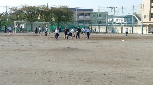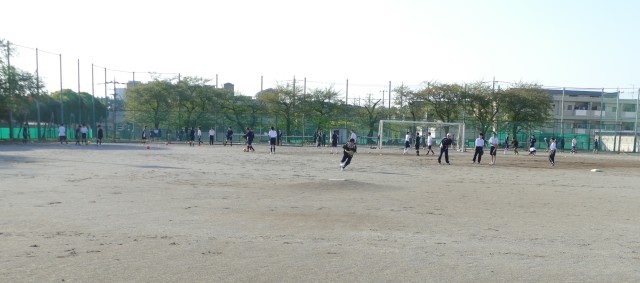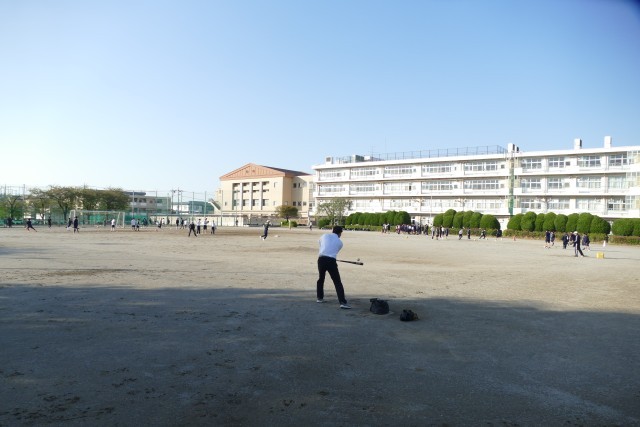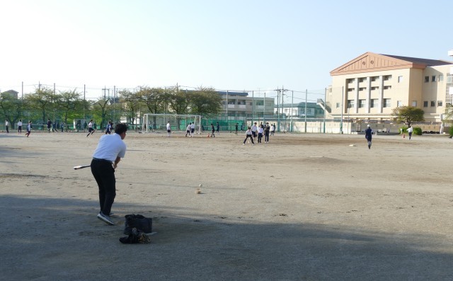 4月16日(木)放課後に校庭で、野球部のみなさんが顧問の山﨑先生のノックを受けていました。