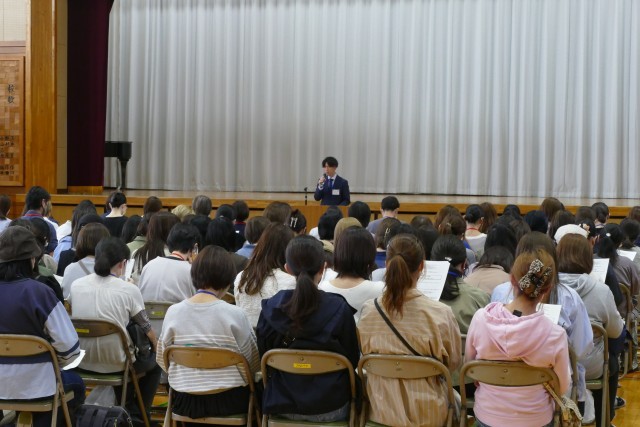 4月17日(金)午後2時15分からアリーナで保護者会を開催しました。多くの保護者の皆様が出席してくださいました。はじめに、教職員の紹介を学年ごとに行いました。次に髙橋校長から学校概要と学校経営方針についてのお話しがありました。そして、本校の生活指導について生活指導主任の蔀先生からありました。評価・評定について教務主任の常盤先生からありました。高校入試の推薦基準について進路指導主任の笠松先生からありました。その後、学年全体会、学級懇談会を行いました。保護者の皆様、本日は大変ご多用の中、保護者会にご出席いただきまして誠にありがとうございます。今後とも忠生中学校の子供たちの未来のために、ご理解とご協力をよろしくお願いいたします。
