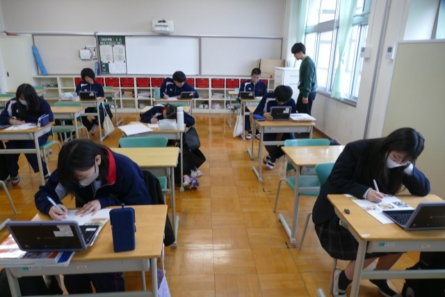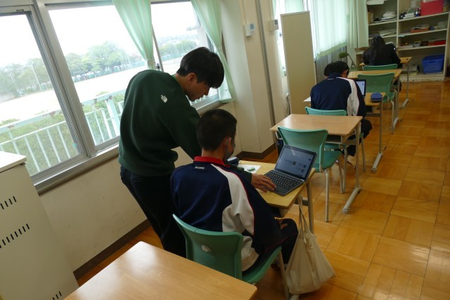 4月23日(木)4校時の9組の授業の様子です。生徒のみなさんは、理科、社会、音楽の授業にしっかりと取り組んでいました。