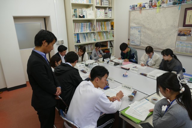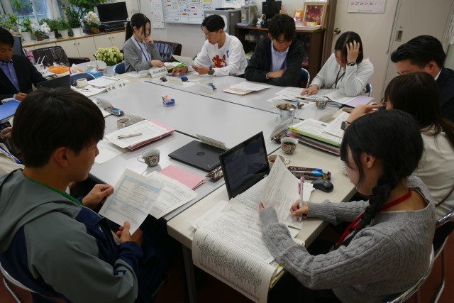 4月27日(月)午後4時から校長室で第1回若手教員研修を行いました。今回の研修のテーマは「自己申告書の書き方」です。講師は校長先生です。はじめに校長先生から書き方の説明があり、次にペアで各教員の自己申告書を発表して確認しました。はじめて自己申告書を書く先生方にとっては、先輩の先生から直に話が聞けて参考になりました。