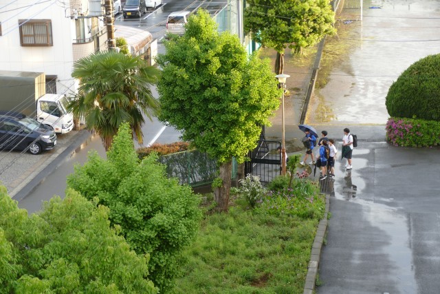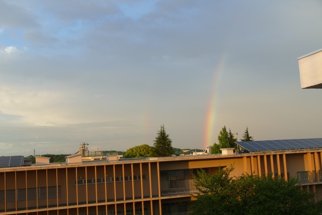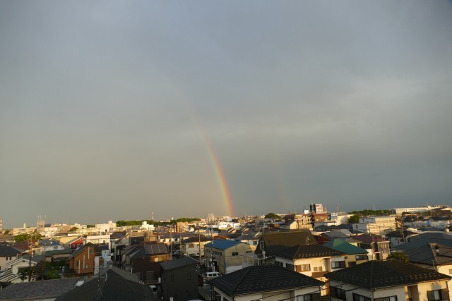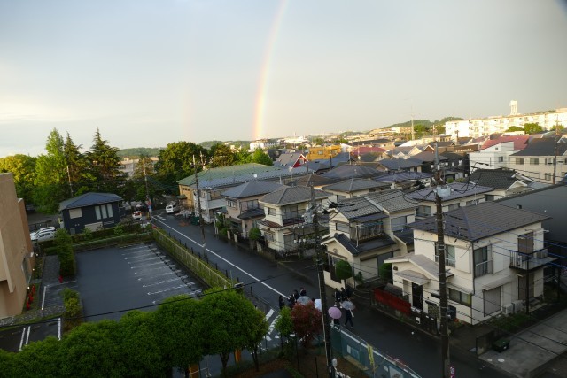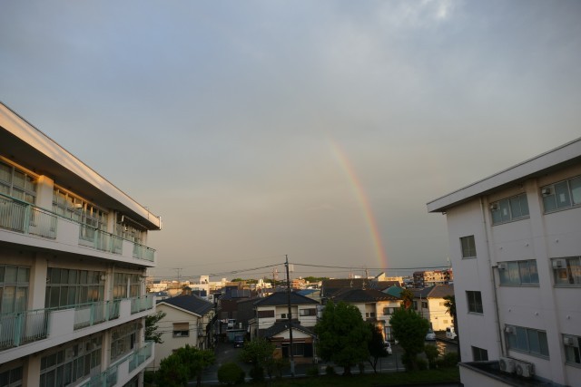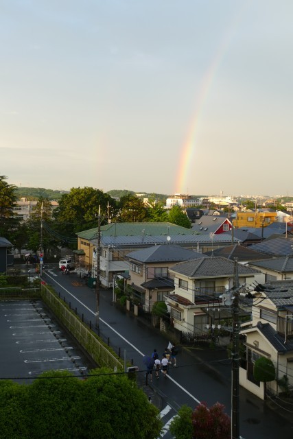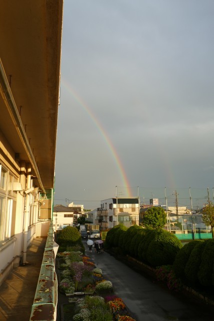 4月27日(月)夕方、美しい虹が見える中、部活動を終えて、友達と笑って家路につく生徒がいました。「さようなら!」と大きなあいさつをしてくれました。