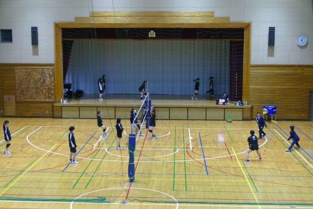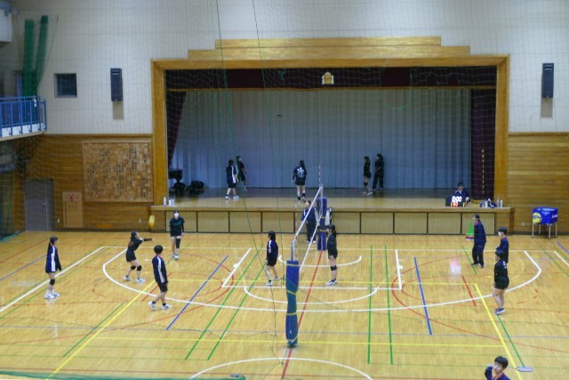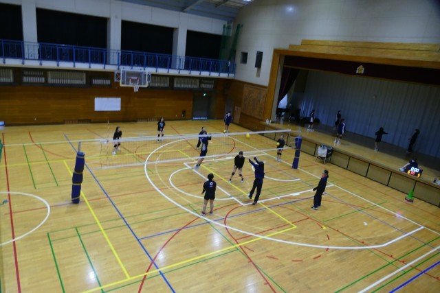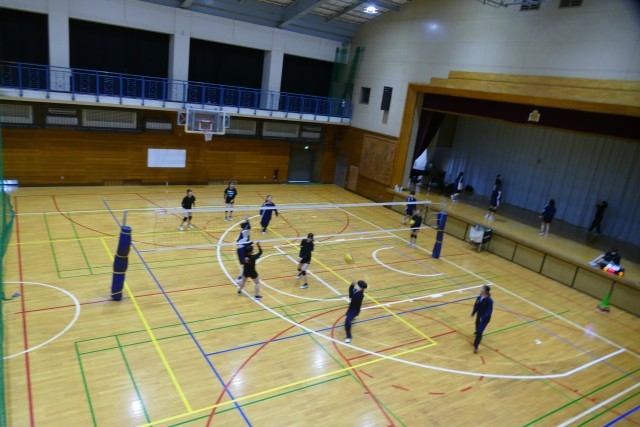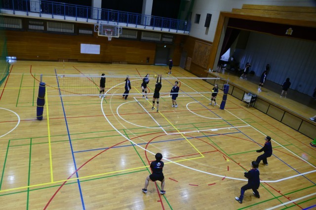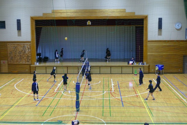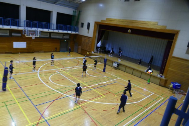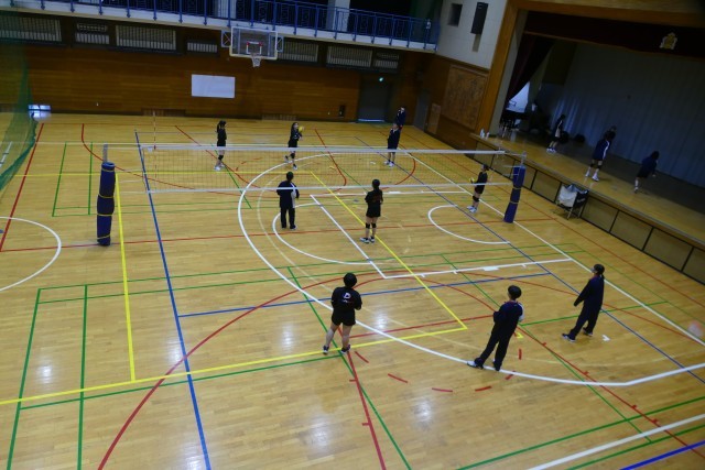 放課後のバレーボール部の練習の様子です。アリーナに入ったら、バレー部のみなさんが大きな声で「こんにちは!」とあいさつしてくれました。とてもうれしかったです。