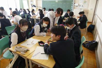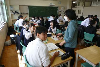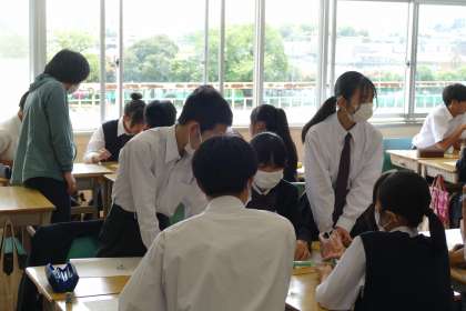 生徒たちはグループで話し合い、明るく楽しく取り組んでおります。