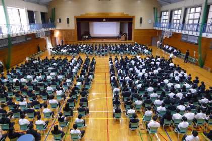 5月10日(金)6校時に、アリーナで全校生徒が集まり、生徒総会が行われました。