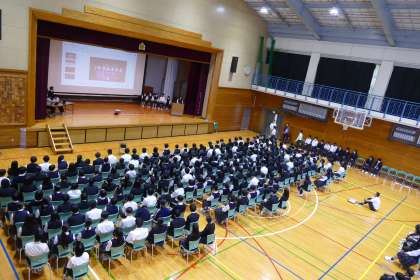 5月10日(金)6校時に、アリーナで全校生徒が集まり、生徒総会が行われました。