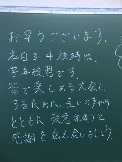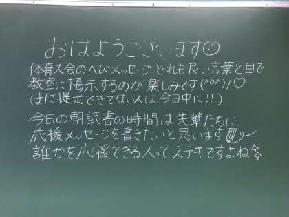 5月14日(火)の朝に校内を巡回していたら、1年生と3年生の教室の黒板に学級担任の先生から生徒の皆さんへのメッセージが書いてありました。
