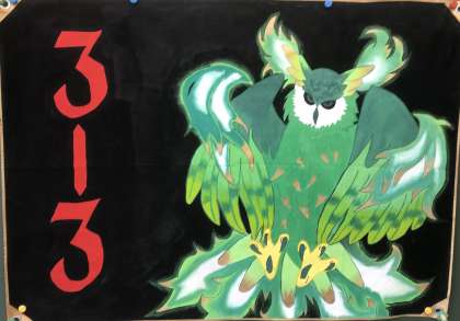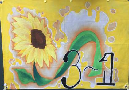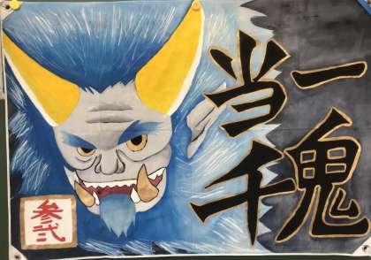 5月22日(水)の朝に各教室を巡回していたら、黒板に完成したクラス旗が飾ってありました。