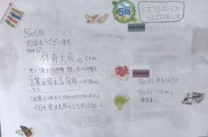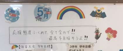 5月25日(土)の朝に校内を巡回していたら、各学年のフロアーに各学年主任の先生から生徒の皆さんへのメッセージが書いてありました。